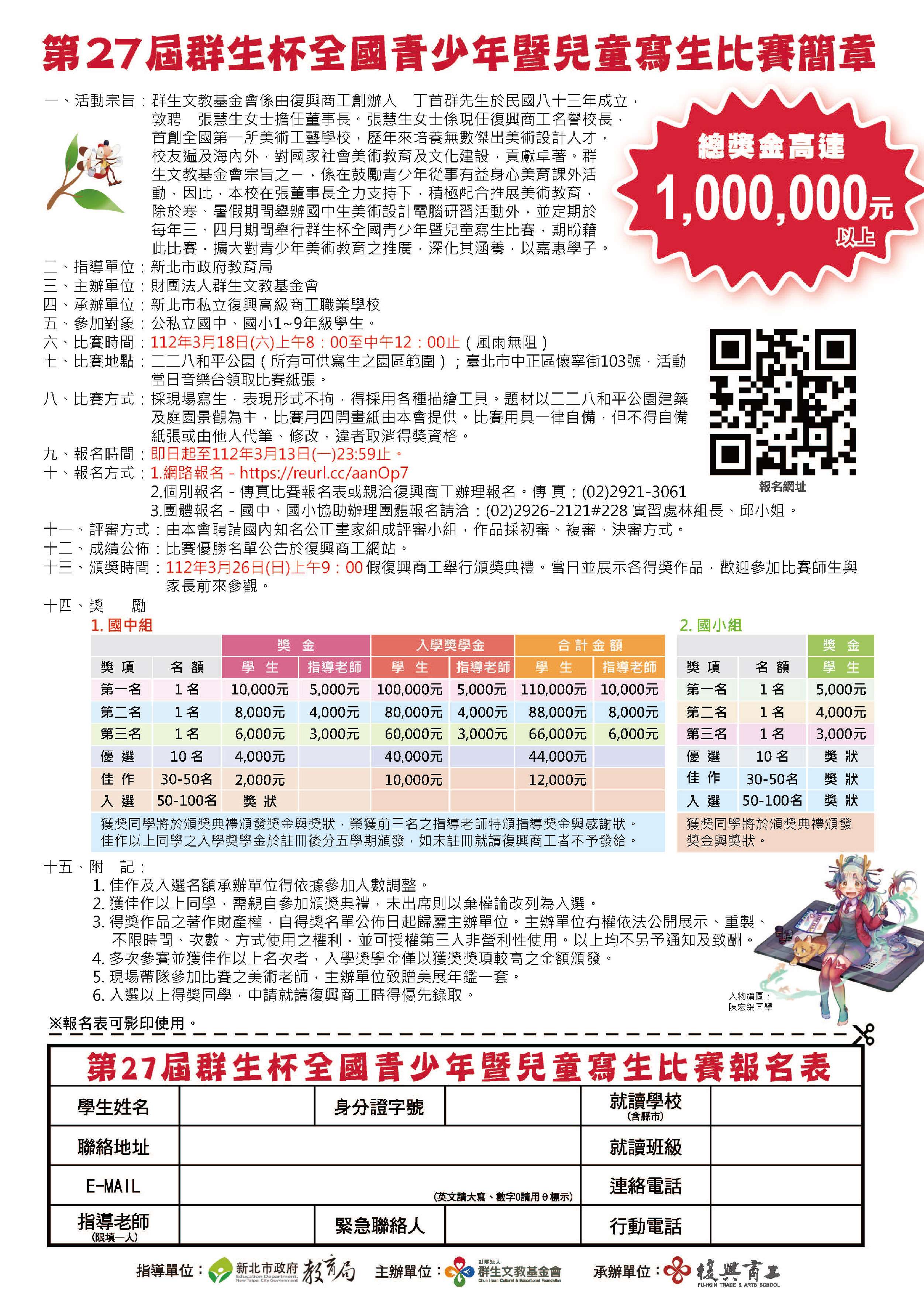 六、比賽簡章公告於群生基金會網站首頁http://210.71.66.14/ischool/publish_page/193/,敬請下載查閱。